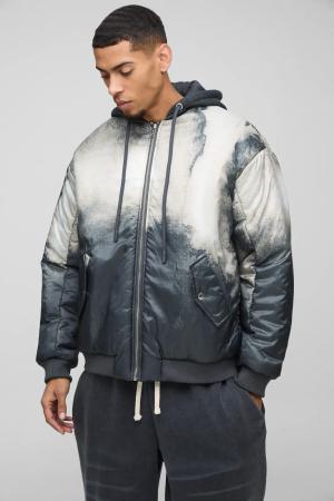 Oversize Bomberjacke mit abstraktem Print und Kapuze - Grau - XS, Grau
