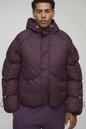 Oversize Steppjacke mit gerafften Ärmeln - Lila - S, Lila