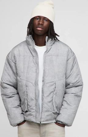 Oversize Steppjacke mit gerafften Ärmeln - Grau - S, Grau