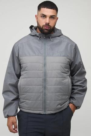 Plus gesteppte Jacke mit Kapuze - Grau - 3XL, Grau