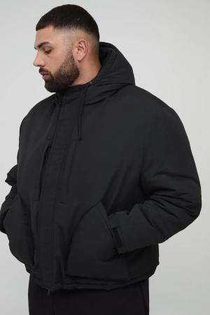 Plus kastiger Steppmantel in Schwarz mit Kapuze - 2XL, Schwarz