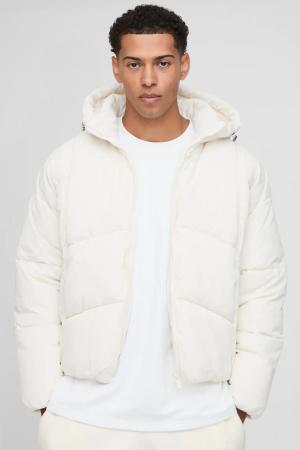 Strukturierte Oversize Mini-Steppjacke mit Kapuze - Ecru - S, Ecru
