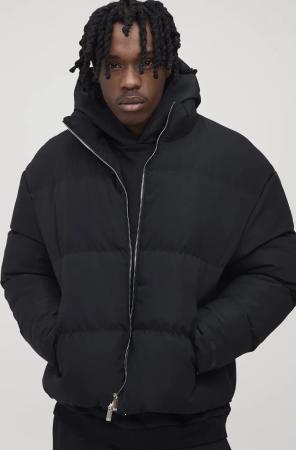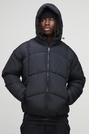 Doppellagige kastige Oversize Steppjacke mit Kapuze - Schwarz - XL, Schwarz