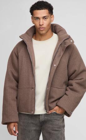 Tall kastige braune Man Steppjacke mit Trichterkragen - XL, Braun