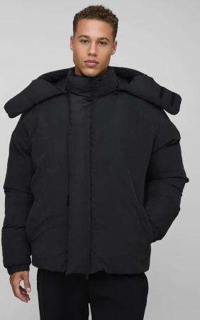 Tall Regular Fit Man Extreme Heavy Padded Hooded Puffer Coat In Black - Schwarz - 2XL, Schwarz