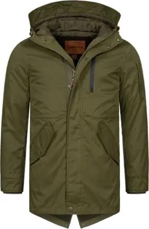IDPulsoor Herren Winterjacke Parka Mantel gefüttert mit Teddy-Futter Fellkapuze Pattentaschen Baumwollmischung Regular fit, Größe:M, Farbe:Army (600)