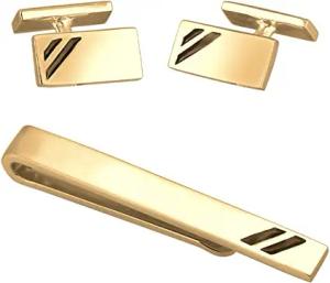 Manschettenknöpfe & Krawattennadel für Herren im goldenen Design, Herren Accessoire Set aus 925 Sterling Silber vergoldet mit Emaille Details, Männer Geschenk für Hochzeit und Geburtstag