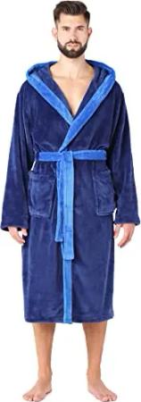 Herren Bademantel lang mit Gürtel LA40-221 (Dunkelblau/Blau, M)