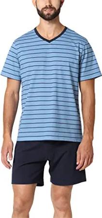 Herren Schlafanzug kurz aus Baumwolle LA40-223 (Ozean Marineblau, M)