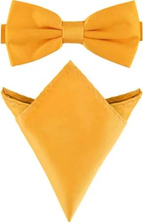 Herren Schmale Fliege & Einstecktuch Set M/P (12cm x 6cm, 22cm x 22cm, Dunkel gelb)