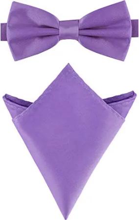 Herren Schmale Fliege & Einstecktuch Set M/P (12cm x 6cm, 22cm x 22cm, Hellviolett)