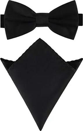 Herren Schmale Fliege & Einstecktuch Set M/P (12cm x 6cm, 22cm x 22cm, Schwarz)
