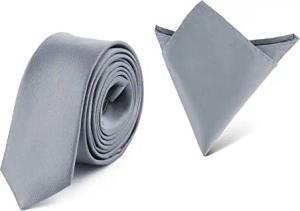 Herren Schmale Krawatte & Einstecktuch Set SP/P (150cm x 5cm, 22cm x 22cm, Silber)