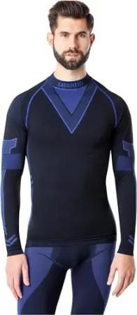 Thermounterwäsche Herren Funktionsunterwäsche Langarm Shirt Thermo Unterhemd LAGI001 (Schwarz/Marineblau, XXL)