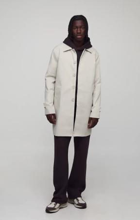 Einreihiger Poly Twill-Regenmantel - Stone - L, Stone
