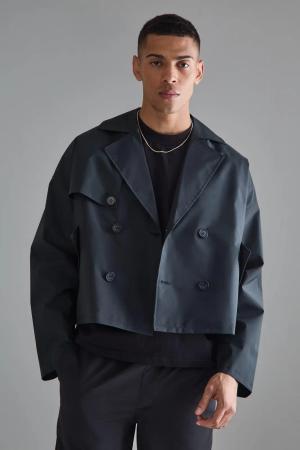 Kurzer Zweireihiger Trenchcoat - Black - L, Black