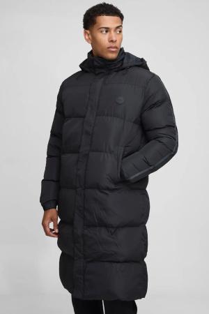 Man Regular Fit Panelled Longline Puffer Jacket - Black - S, Black