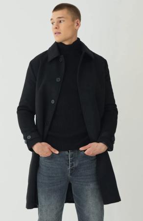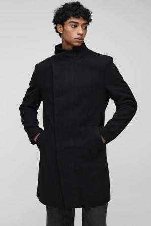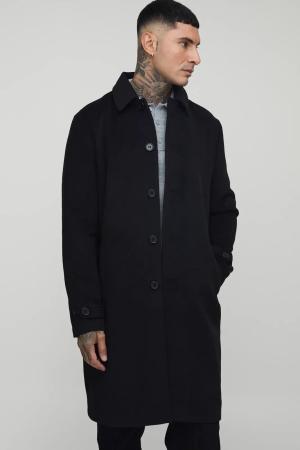 Tall Plain Regular Fit Collared Overcoat In Black - L, Black