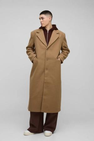 Tall Single Breasted Wool Look Regular Fit Overcoat In Beige - Xl, Beige