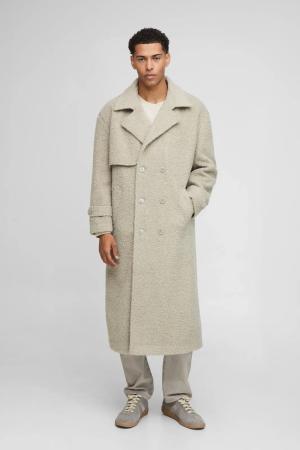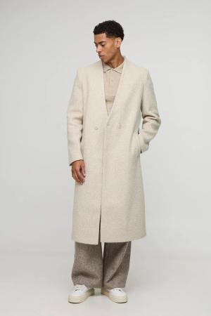 Oversized Fit Double Breasted Longline Boucle Overcoat - Stone - M, Stone