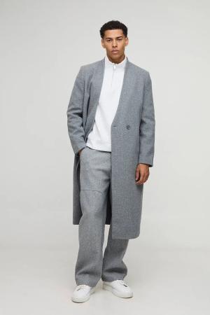 Tall Einreihiger Mantel In Wolloptik - Grey - Xl, Grey