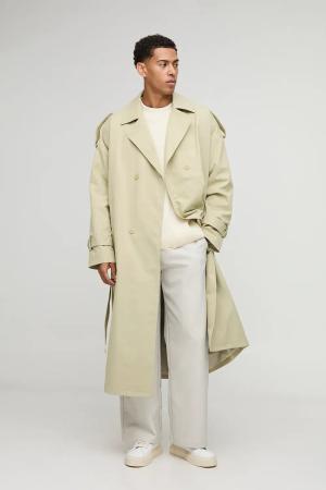Oversized Twill Double Breasted Trench Coat - Sand - Xl, Sand
