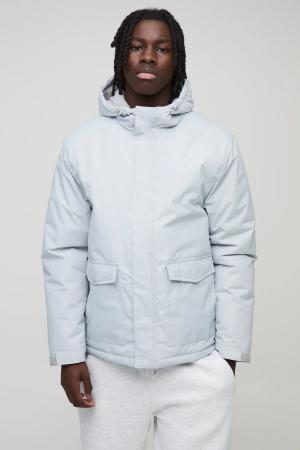 Tall Lange Steppjacke Mit 4-Taschen Und Kapuze - Grey - L, Grey