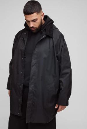 Plus Oversized Double Breasted Trench Overcoat In Black - 2Xl, Black