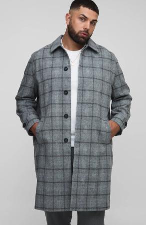 Plus Regular Fit Raglan Single Breasted Check Collar Buckle Car Coat - Grey - 2Xl, Grey