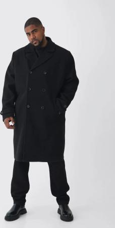 Plus Zweireihiger Mantel In Wolloptik - Black - 2Xl, Black