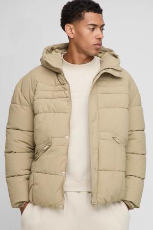 Regular Fit Curved Panel Padded Puffer Jacket - Stone - L, Stone