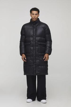 Regular Fit High Shine Longline Puffer Jacket - Black - S, Black