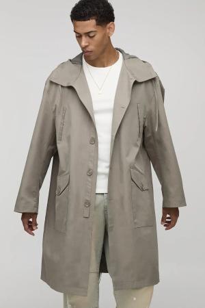 Regular Fit Long Length Hooded Parka Jacket - Charcoal - S, Charcoal