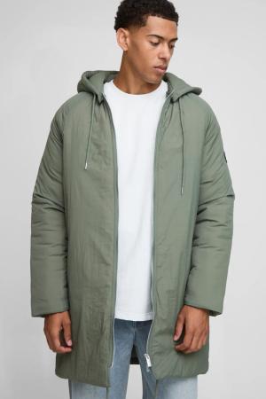 Regular Fit Long Length Hooded Parka Jacket - Khaki - S, Khaki