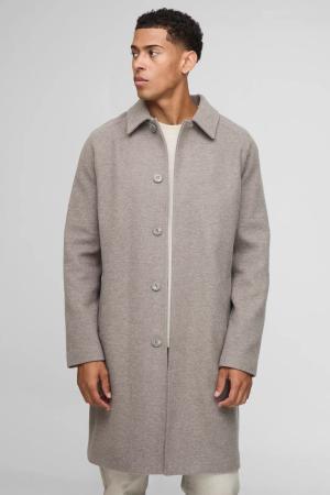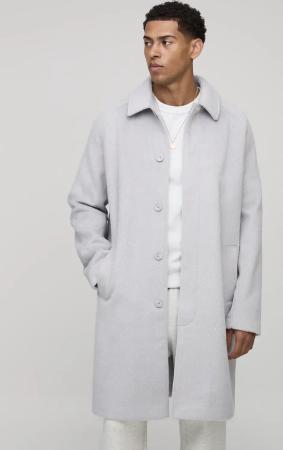 Regular Fit Raglan Single Breasted Brushed Car Coat - Light Grey - M, Light Grey