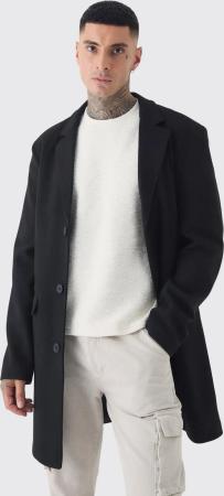 Tall Einreihiger Mantel In Wolloptik - Black - M, Black