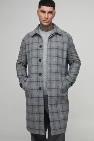 Tall Regular Fit Raglan Single Breasted Check Collar Buckle Car Coat - Grey - M, Grey