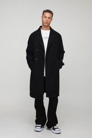 Tall Oversized Double Breasted Trench Overcoat In Black - L, Black