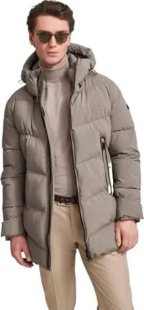 Herren Wintermantel langer Steppmantel mit Kapuze Rigo Matt-YM Greige Gr. M