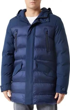 Man Regular Fit Panelled Longline Puffer Jacket - Slate Blue - L, Slate Blue