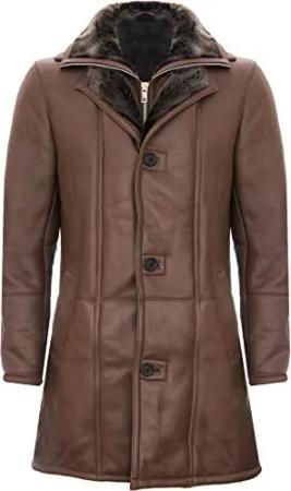 Herren Warm Braun Nappa Leder Shearling Schaffell Trench Pilot Jacke Mantel XL
