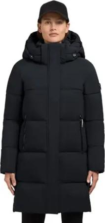 Damen Mantel lange warme Steppjacke mit abnehmbarer Kapuze und magnetischer Abdeckleiste Haya Matt-YM Dark Navy Gr. M
