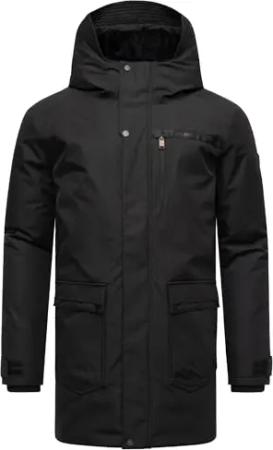 Herren warme lange Winterjacke mit verstellbarer Kapuze Ragaan Black Gr. XXL