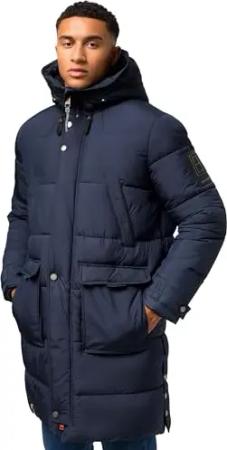 Herren warmer Wintermantel lang Winterparka mit Fleece-Innenfutter, zahlreichen Taschen innen und außen und großer Kapuze Kitraan XX Navy Gr. XL