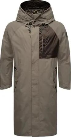 Leichter Herren Übergangsmantel Langer Regenmantel mit Kapuze Zafaar Stone Brown Gr. S