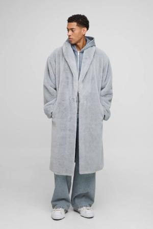 Oversized Plush Faux Fur Shawl Overcoat - Grau - XL, Grau