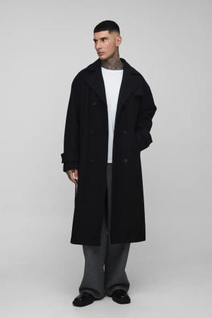 Tall Oversized Double Breasted Trench Overcoat In Black