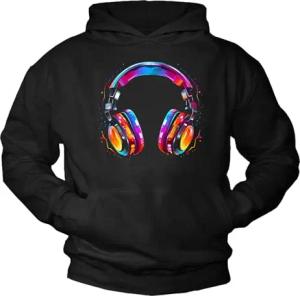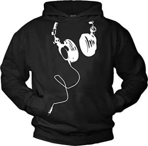 Hip Hop Hoodie mit Kopfhörer Motiv 80er 90er Jahre Festival Outfit Kapuzenpullover Herren Jungen Mädchen Kinder Rap Schwarz XXL