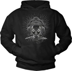 Hoodie mit Buddha Aufdruck Kapuzenpullover Kopfhörer Print Shirt mit Kapuze Lotus Musik Geschenke für Männer Herren Jungs Schwarz M