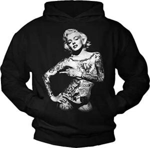 Kapuzenpullover Herren/Damen - Marilyn Tattoo Sweatshirt Pullover mit Kapuze schwarz Größe S
